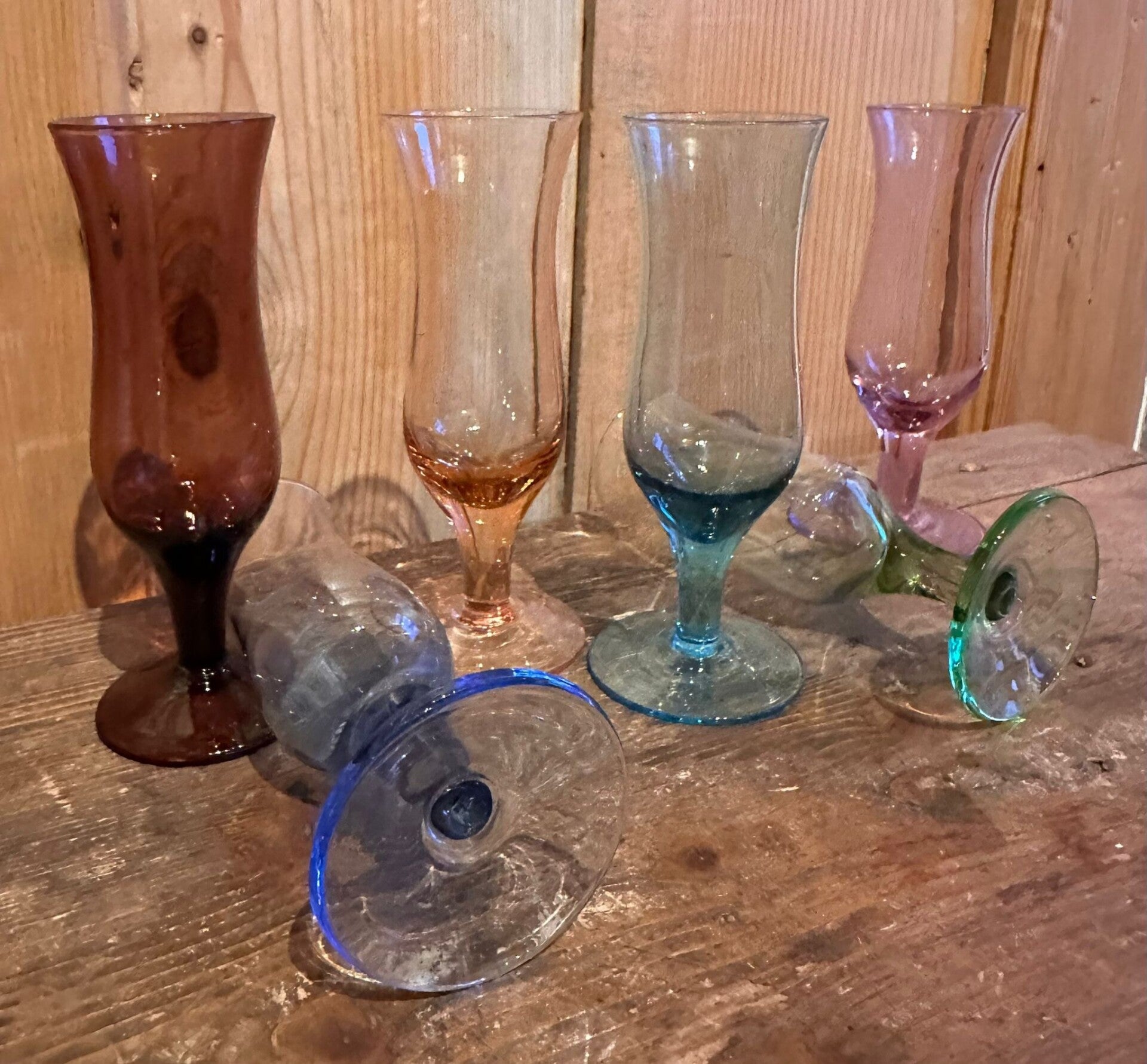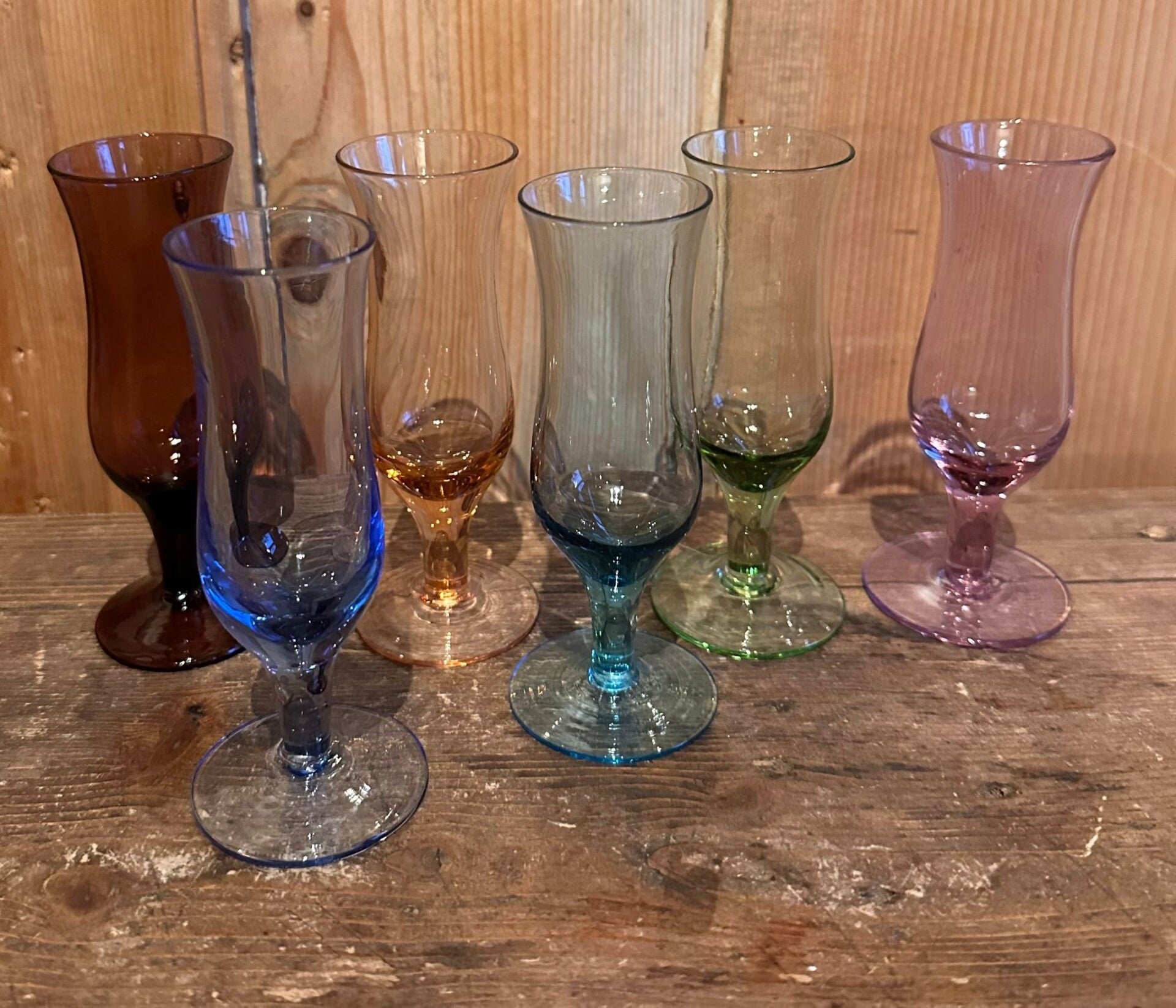 Vintage gekleurde likeur‑ & cocktailglazen op voet Set van 6 Jewel‑tones Edel & Weiss